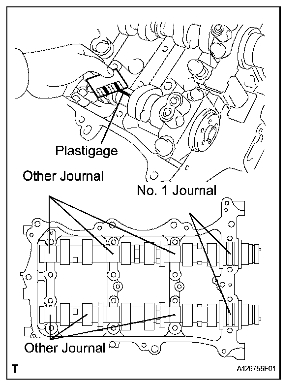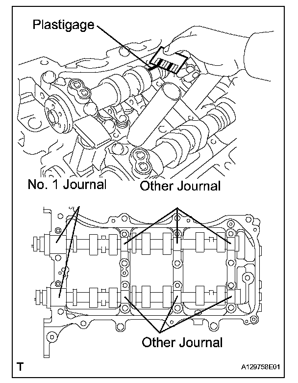 (c) Lay a strip of Plastigage across each of the camshaft journals.