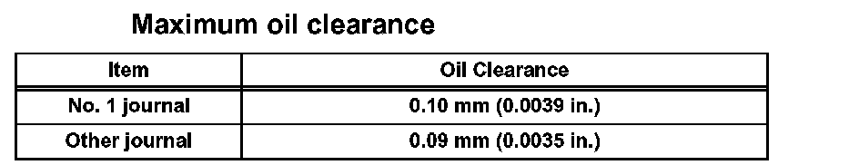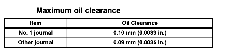 Maximum oil clearance: 0.070 mm (0.0028 in.)