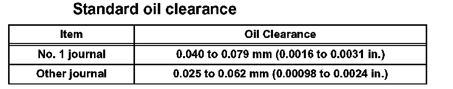 Standard oil clearance: 0.045 to 0.067 mm (0.0018 to 0.0026 in.)