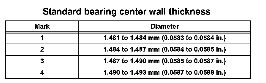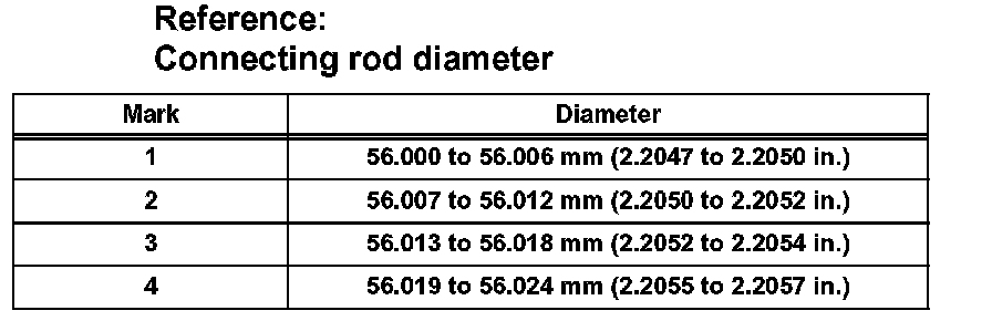 Crankshaft pin diameter: 52.992 to 53.000 mm (2.0863 to 2.0866 in.)