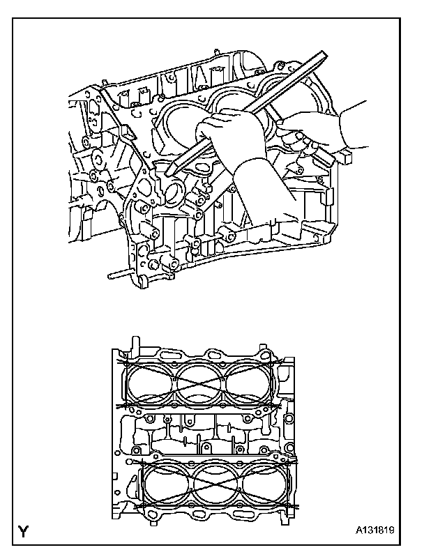 If the warpage is greater than the maximum, replace the cylinder block.
