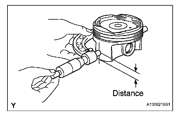 (a) Using a micrometer, measure the piston diameter at right angles to the piston center line where the distance from the piston end as specified.