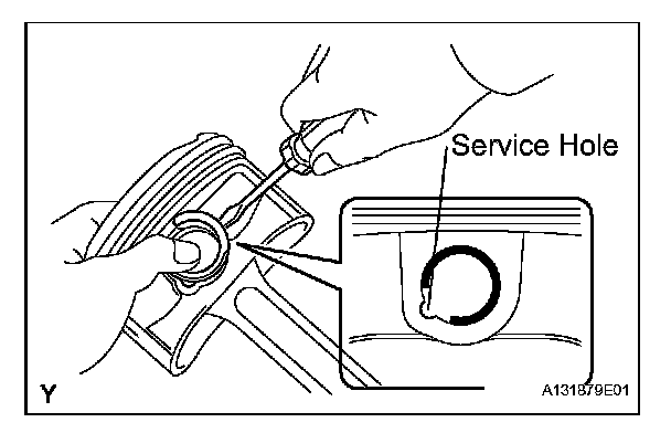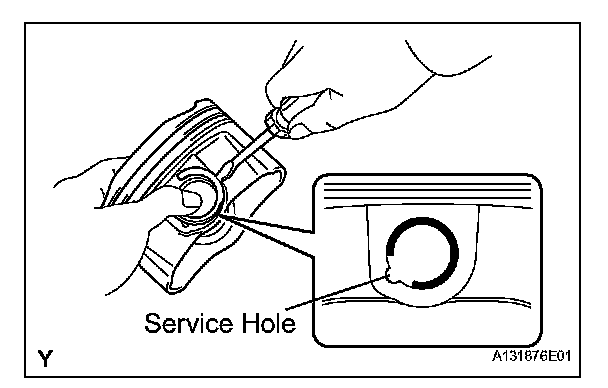 HINT: Be sure that end gap of the snap ring is not aligned with the pin hole cutout portion of the piston.