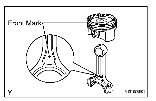 (e) Check that the front mark of the connecting rod cap is facing forward.