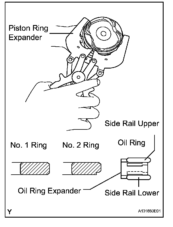 (a) Install the oil ring expander and 2 side rails by hand.