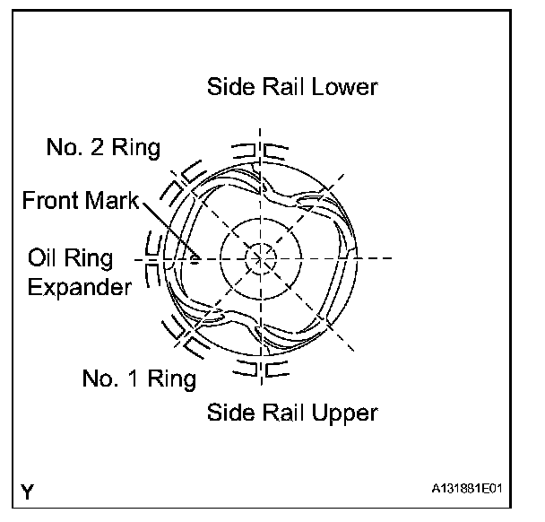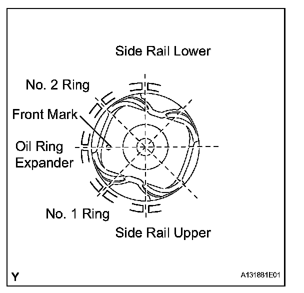 (c) Position the piston rings so that the ring ends are as shown in the illustration.