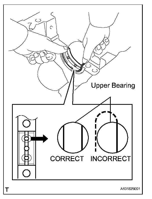 (1) Install the upper bearing to the cylinder block as shown in the illustration.
