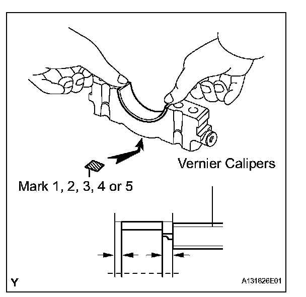 (2) Using vernier calipers, measure the distance between the bearing cap's edge and the lower bearing's edge.