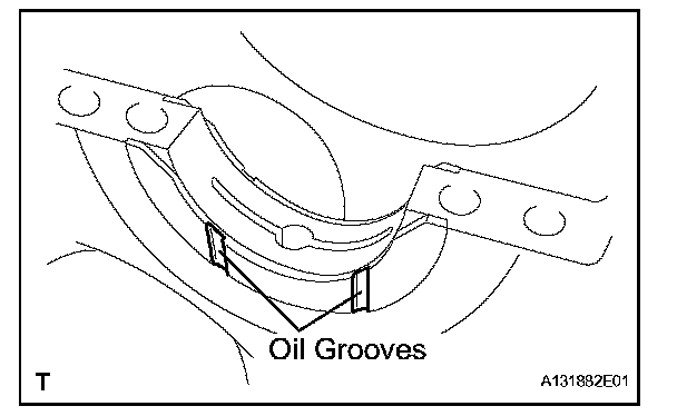 (1) Install the 2 thrust washers under the No. 2 journal position of the cylinder block with the oil grooves facing outward.