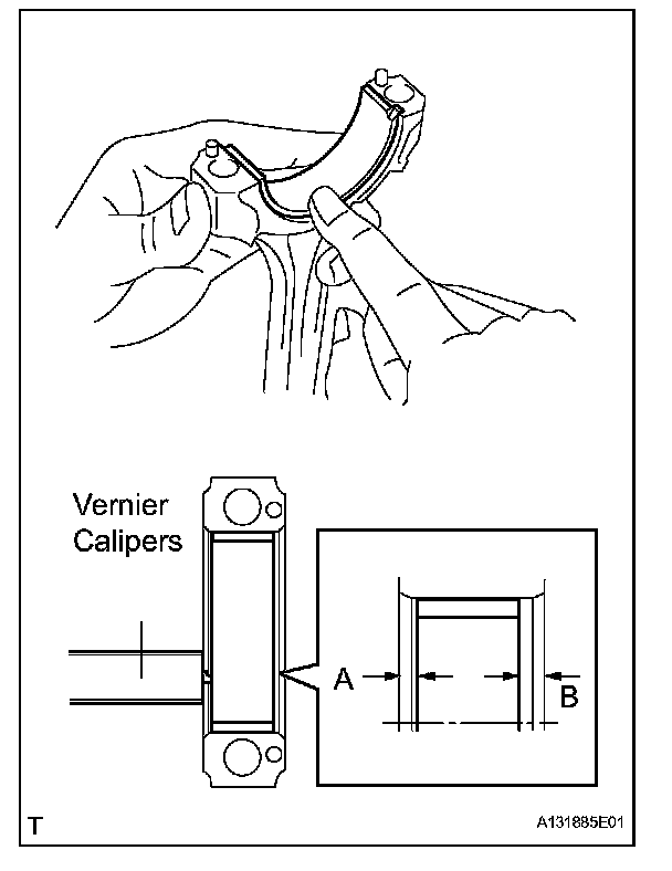 (b) Using vernier calipers, measure the distance between the connecting rod's and bearing cap's edges, and each connecting rod bearing's edge.