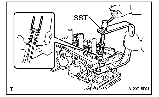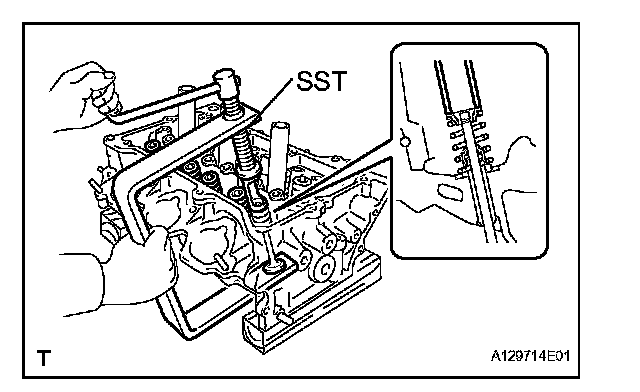 (b) Install the valve, compression spring and spring retainer to the cylinder head.