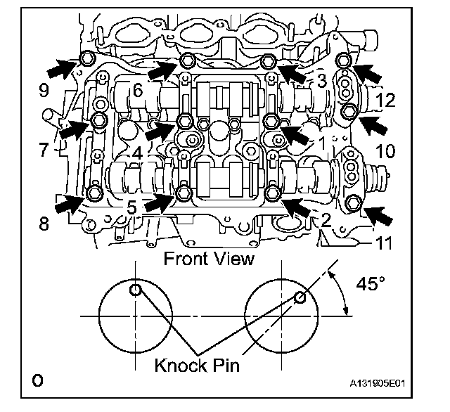 (b) Install the camshaft housing RH, and tighten the 12 bolts in the order shown in the illustration.