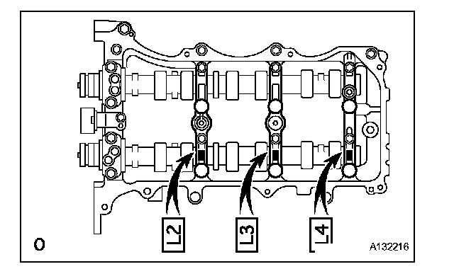 (b) Install the camshaft No. 3 and camshaft No. 4 to the camshaft housing LH.