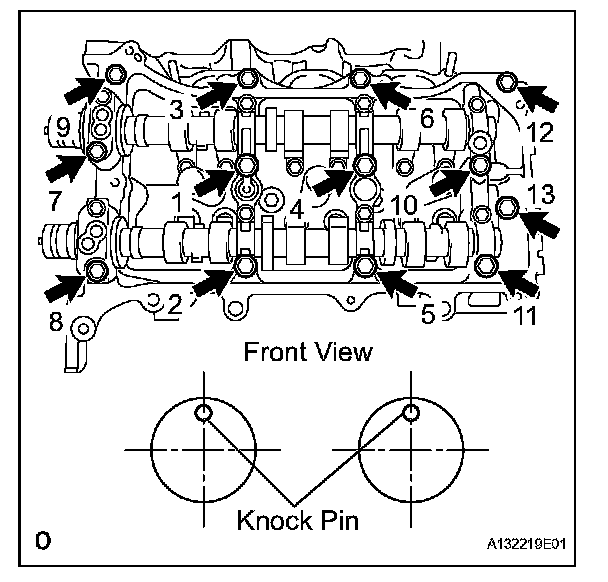 (b) Install the camshaft housing LH, and tighten the 13 bolts in the order shown in the illustration.