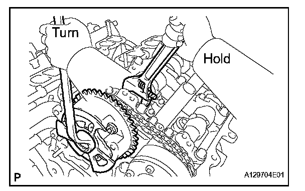 (c) Turn the camshaft timing gear assembly on the RH bank counterclockwise to tighten the chain between the banks.