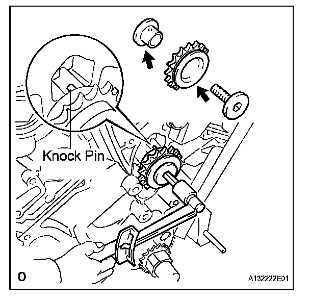 (b) Temporarily install the idle gear shaft No. 1 and idle sprocket with the idle gear shaft No. 2 while aligning the knock pin of the idle gear shaft No. 1 with the knock pin groove of the cylinder block.