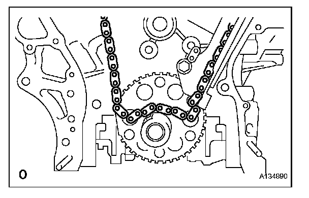 NOTICE: When the idle sprocket is reused, align the chain plates with the marks on the sprocket in order to tighten the chain between the banks.