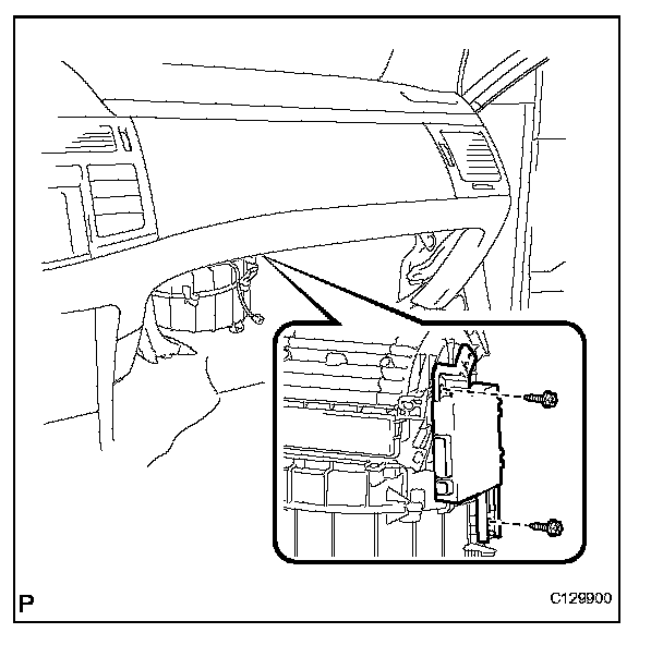 b. Remove the 2 screws and air conditioning amplifier assembly.