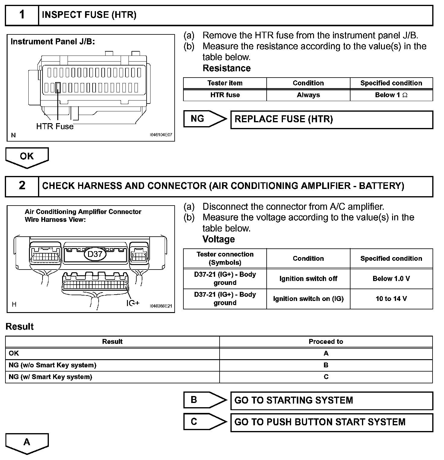 HINT: Start the engine before inspection. Check the IG1 relay or battery if the engine does not start.