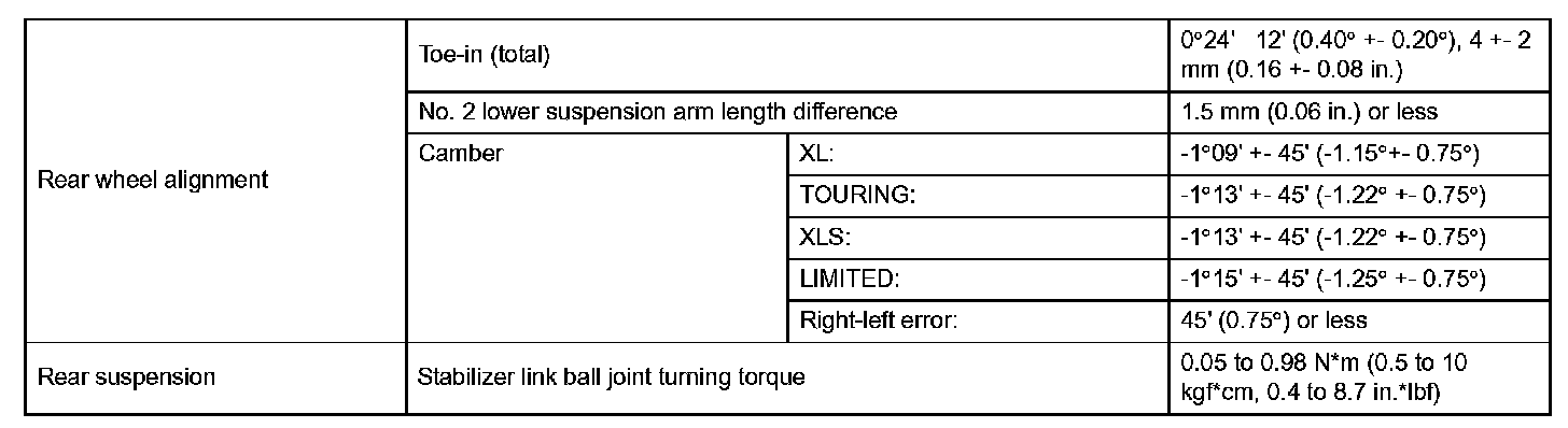 Wheel Alignment specifications