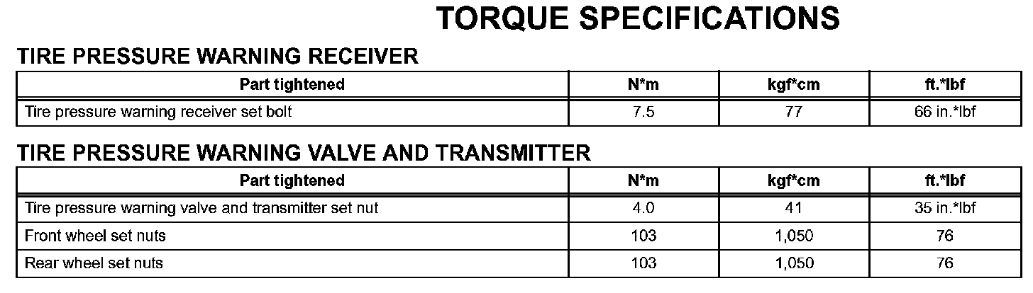 Tire And Wheel - Torque Specifications: