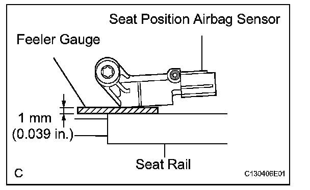 c. Using a feeler gauge 1 mm (0.039 in.), install the seat position sensor.
