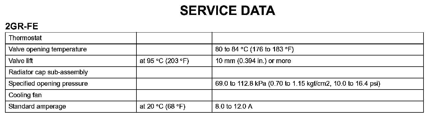 Cooling - Service Data: