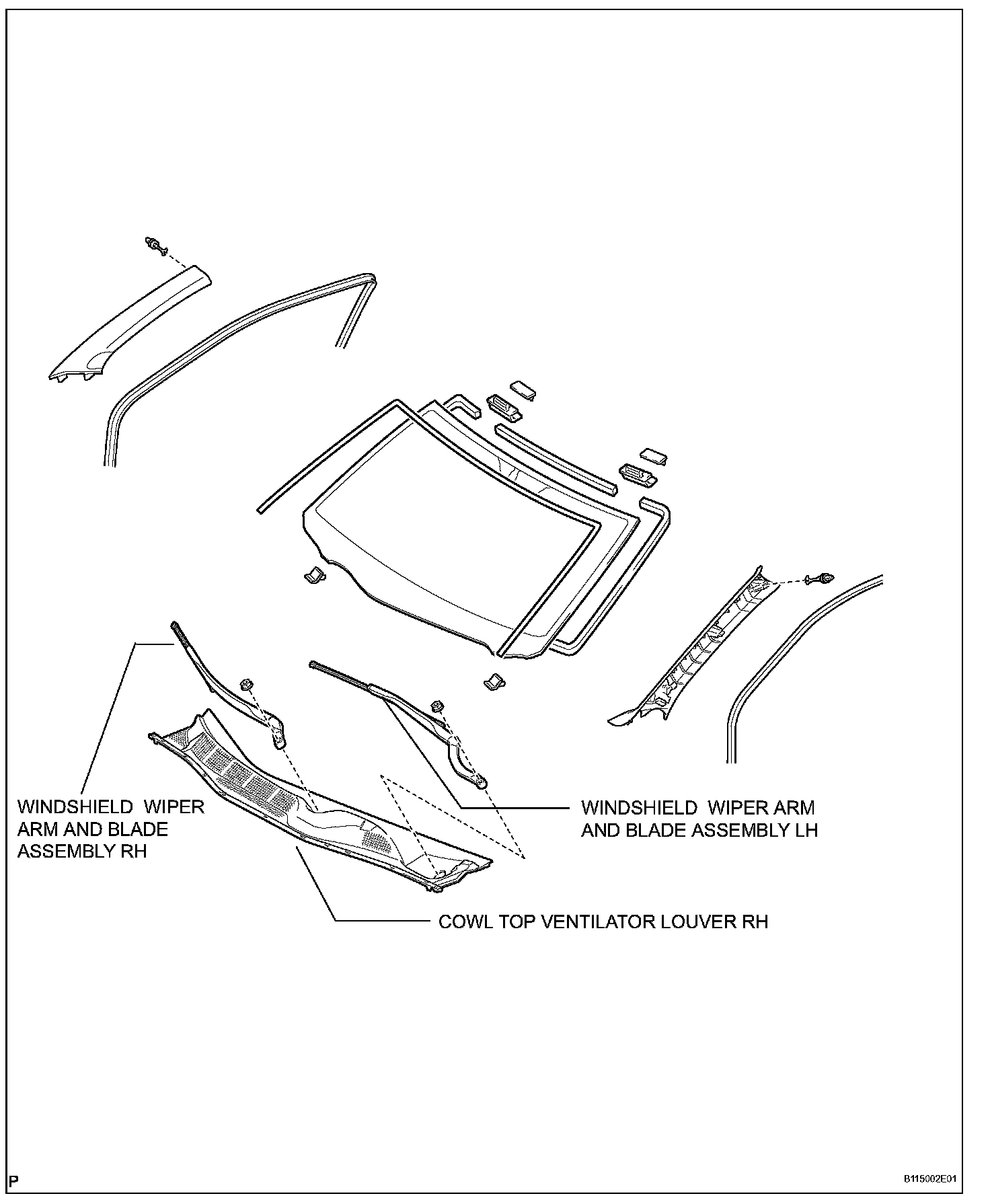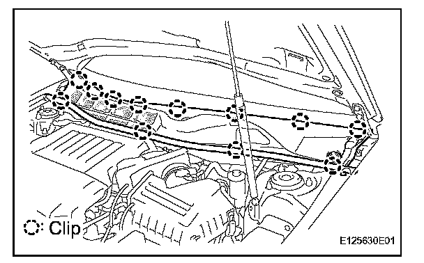 a. Disengage the 12 clips, and remove the cowl top ventilator louver RH.