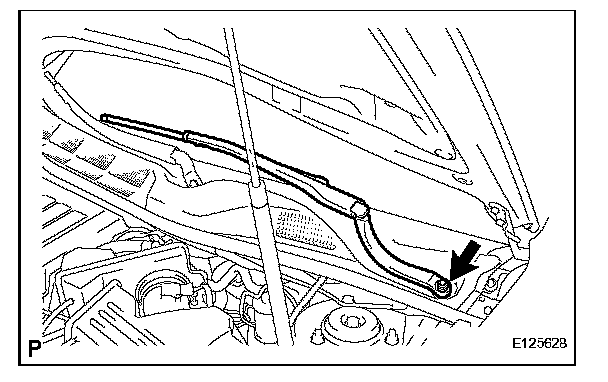 d. Install the FR wiper arm & blade assembly RH with the nut at the position as shown in the illustration.