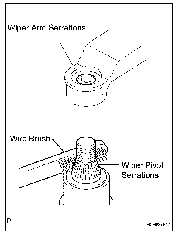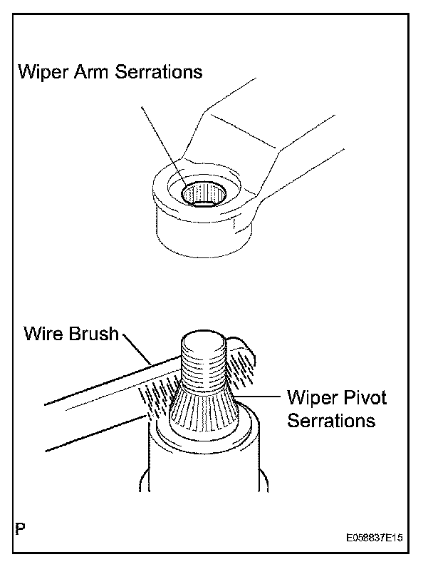 c. Clean the wiper pivot serrations with a wire brush (before reinstalling).