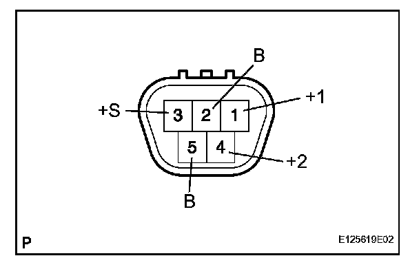 1. Connect the positive battery (+) lead to terminal 1 (+1) of the connector, and the negative battery (-) lead to terminal 5 (E), and check that the motor operates at low speed (LO).