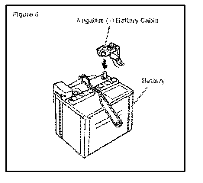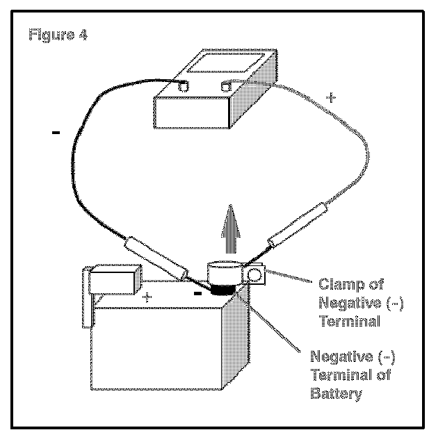 D. Place the negative (-) terminal of the multimeter to the negative (-) terminal post of the battery and the positive (+) terminal of the multimeter to the clamp of the negative (-) terminal battery cable (Figure 4).