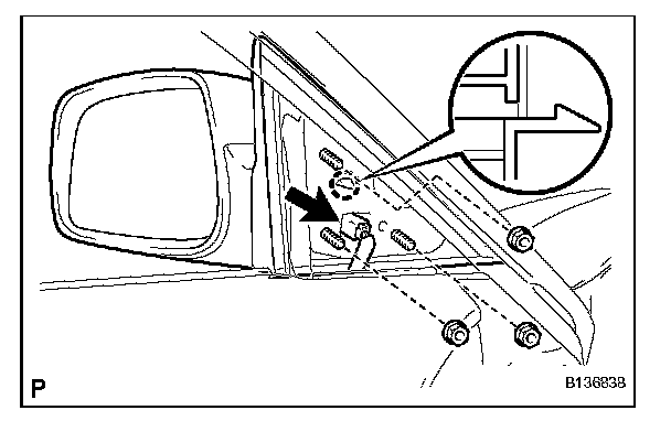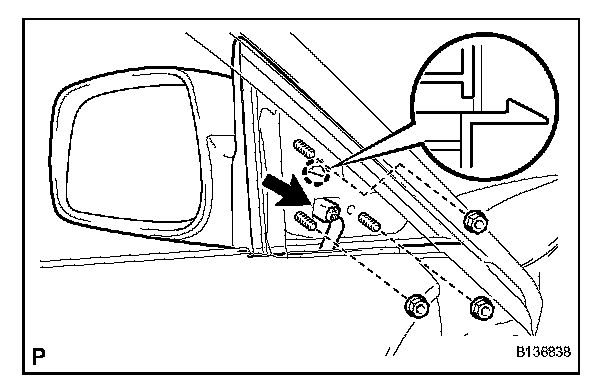 b. Install the outer rear view mirror assembly with the 3 nuts.