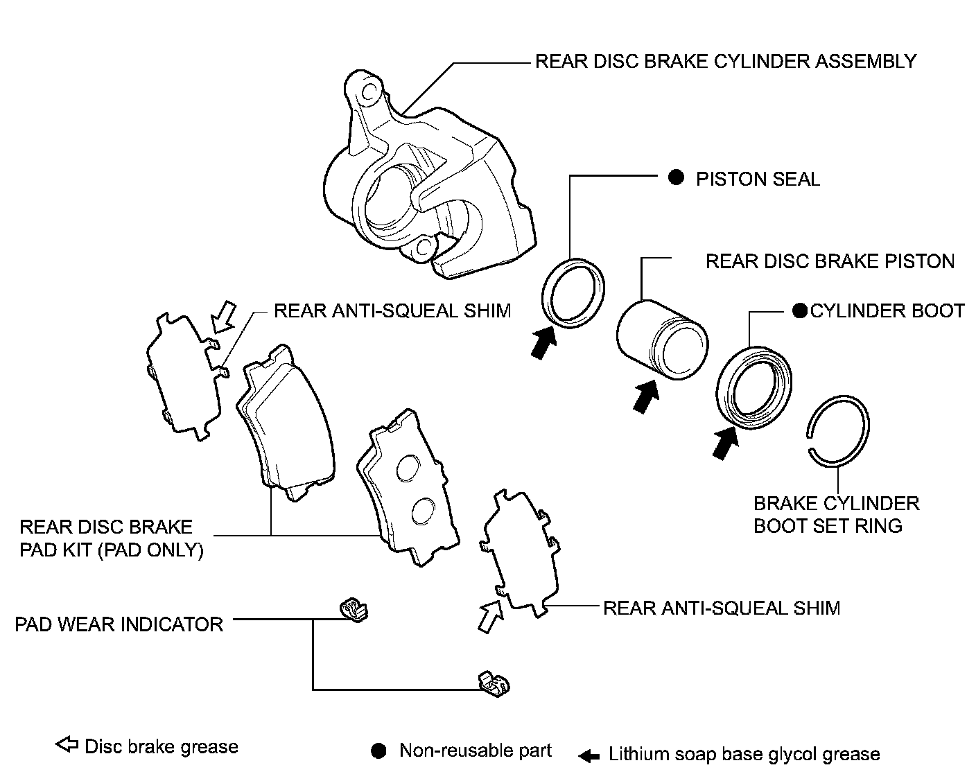 (a) Apply lithium soap base glycol grease to the rear disc brake piston and a new cylinder boot.