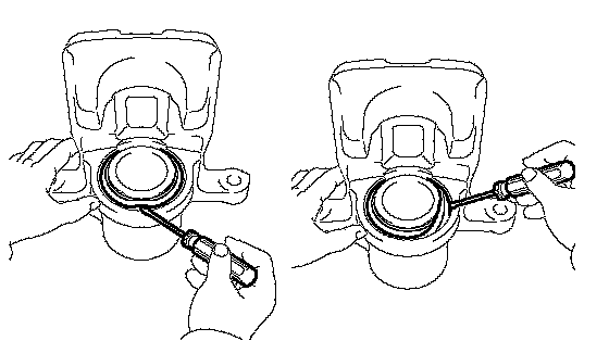 NOTICE: Be careful not to damage the brake piston and cylinder.