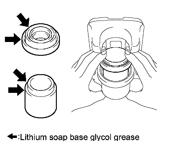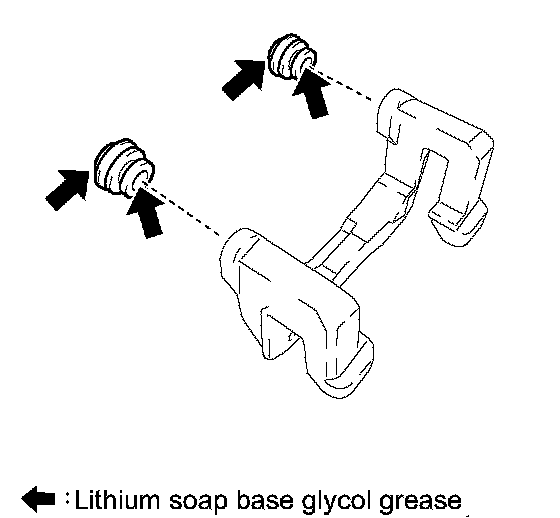 (a) Apply lithium soap base glycol grease to the seal surface of 2 new rear disc brake bushing dust boots.