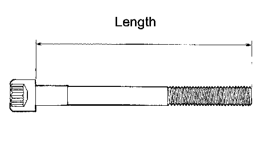Using vernier calipers, measure the length of the head bolts from the seat to the end.