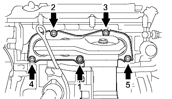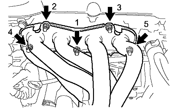 Tighten the 5 nuts in the sequence shown in the illustration.