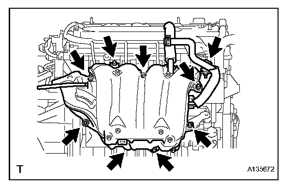 b. Install the intake manifold with the 5 bolts and 2 nuts.