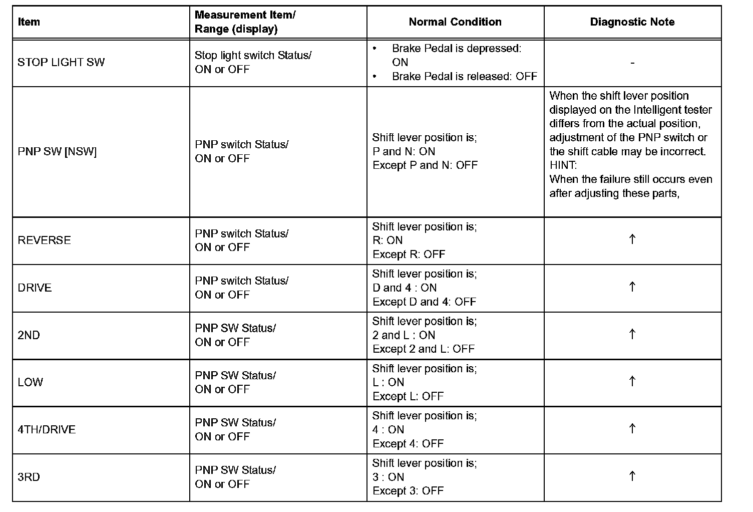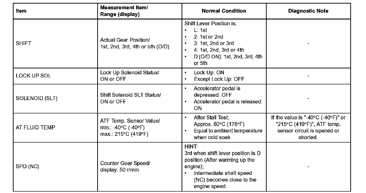 HINT: According to the DATA LIST displayed by the intelligent tester, you can read the value of the switch, sensor, actuator and so on without parts removal. Reading the DATA LIST as the first step of troubleshooting is one method to shorten labor time.