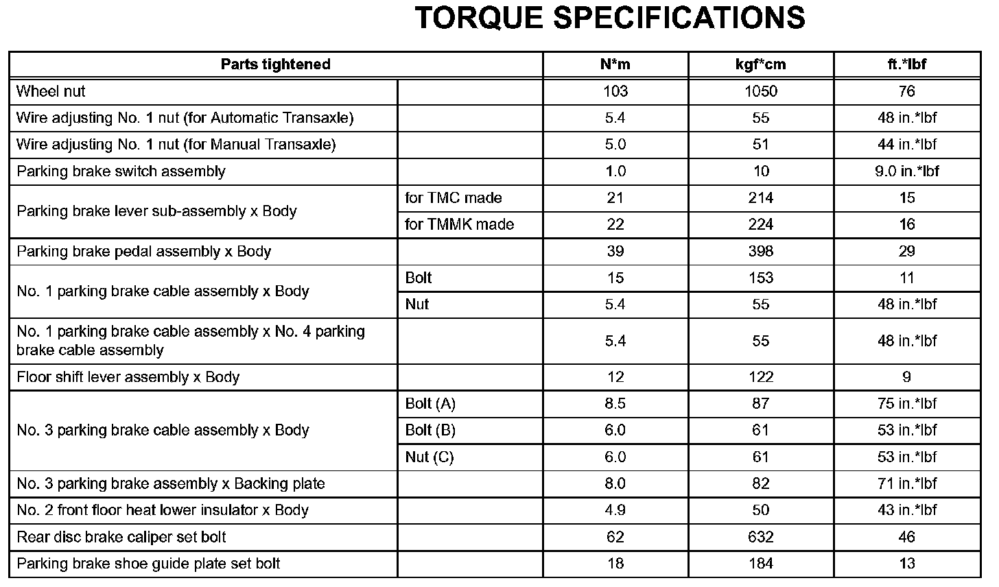 Parking Brake - Torque Specifications: