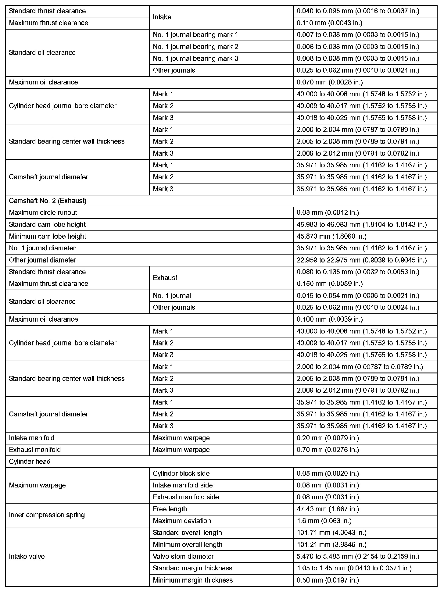 Engine Mechanical - Service Data (Part 2):