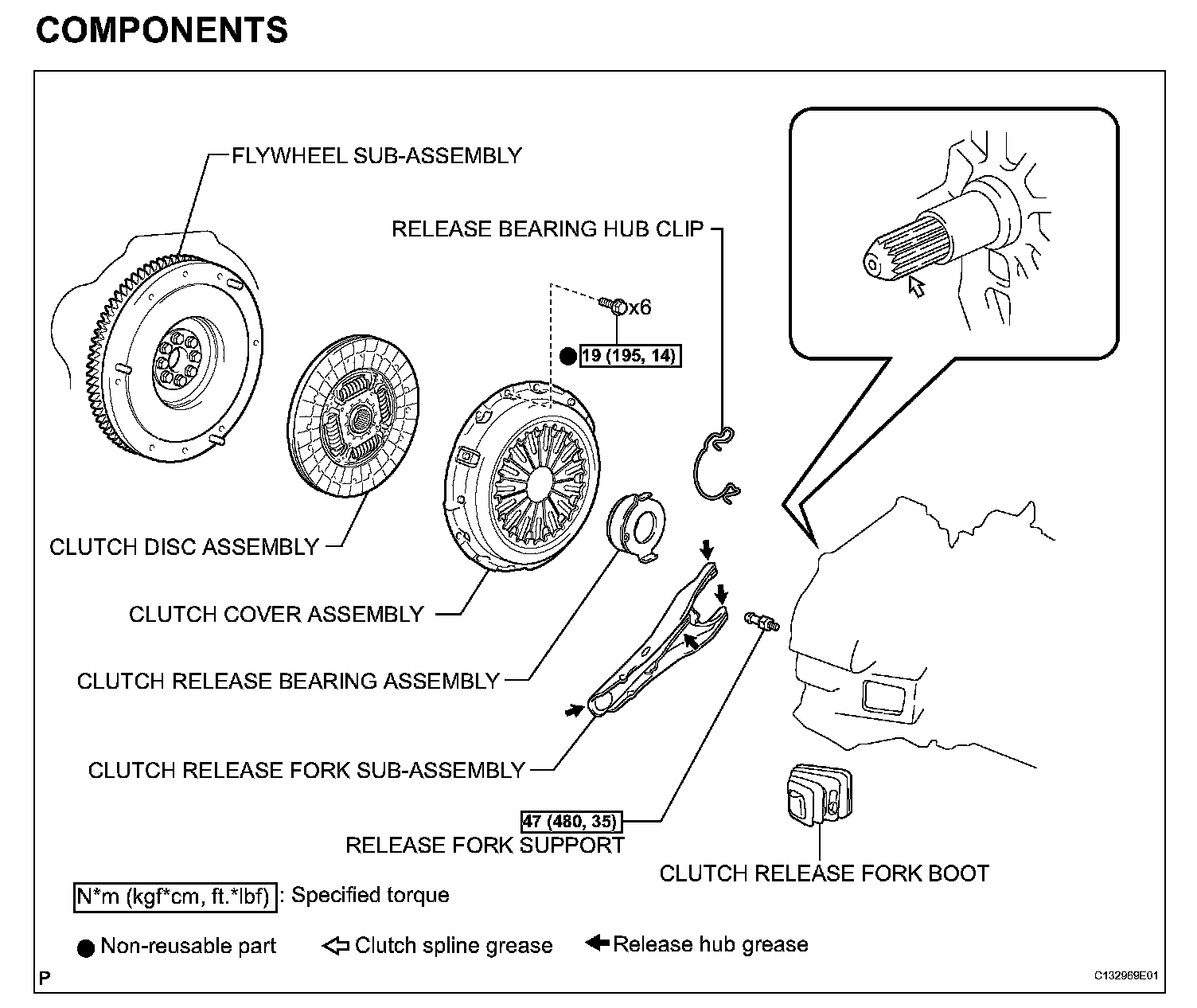NOTICE: After installation, move the fork back and forth to check that the release bearing slides smoothly.