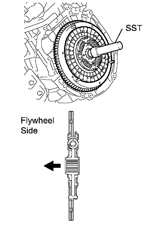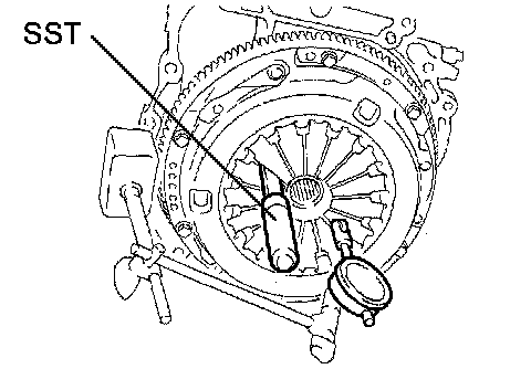 (a) Insert SST into the clutch disc assembly, then insert them into the flywheel subassembly.