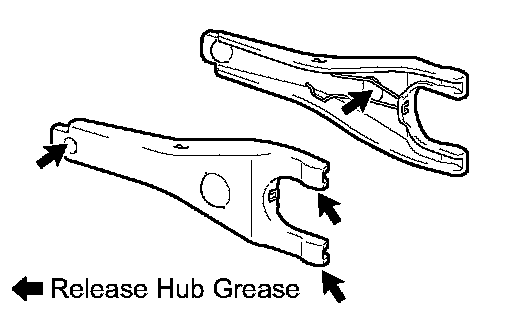 (a) Apply release hub grease to the contact surfaces between the release fork and release bearing, fork and push rod, and fork and fork support.
