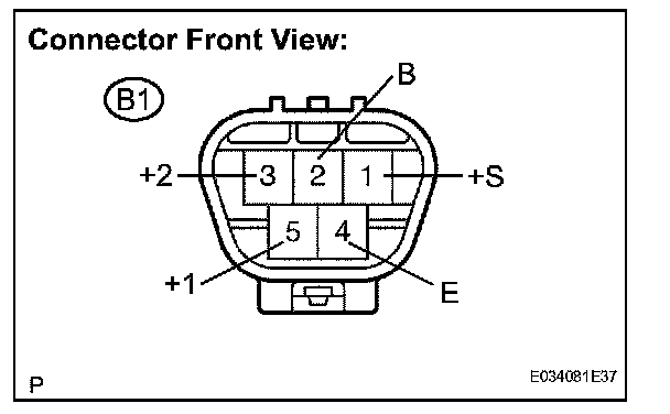 1. Connect a positive (+) lead to terminal B1-3 (+2) of the connector, and a negative (-) battery lead to terminal B1-4 (E), and check that the motor operates at high speed (HI).