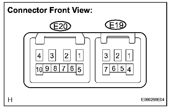 2. Connect a positive (+) battery lead to terminal E20-2 (+B) of the connector and a negative (-) battery lead to terminals E19-2 (EW) and E20-1 (+S).