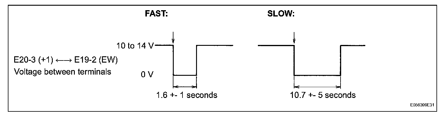 1. Connect the voltmeter (+) terminal to terminal E20-3 (+1) of the connector and the voltmeter (-) terminal to terminal E19-2 (EW).