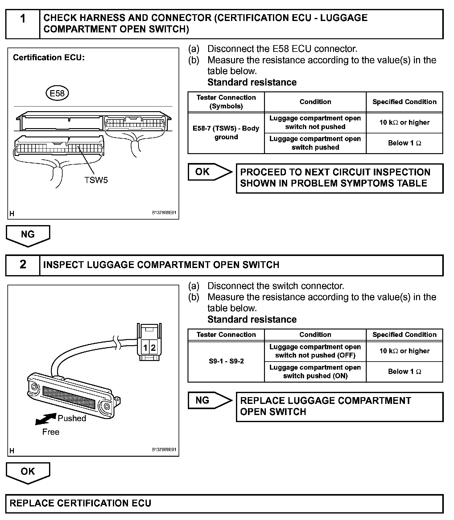 If the certification ECU detects that the luggage compartment open switch is pressed when the driver is carrying the electrical key or when the electrical key is locked in the luggage compartment door, the certification ECU sends a luggage compartment door open motor drive request signal to the main body ECU.