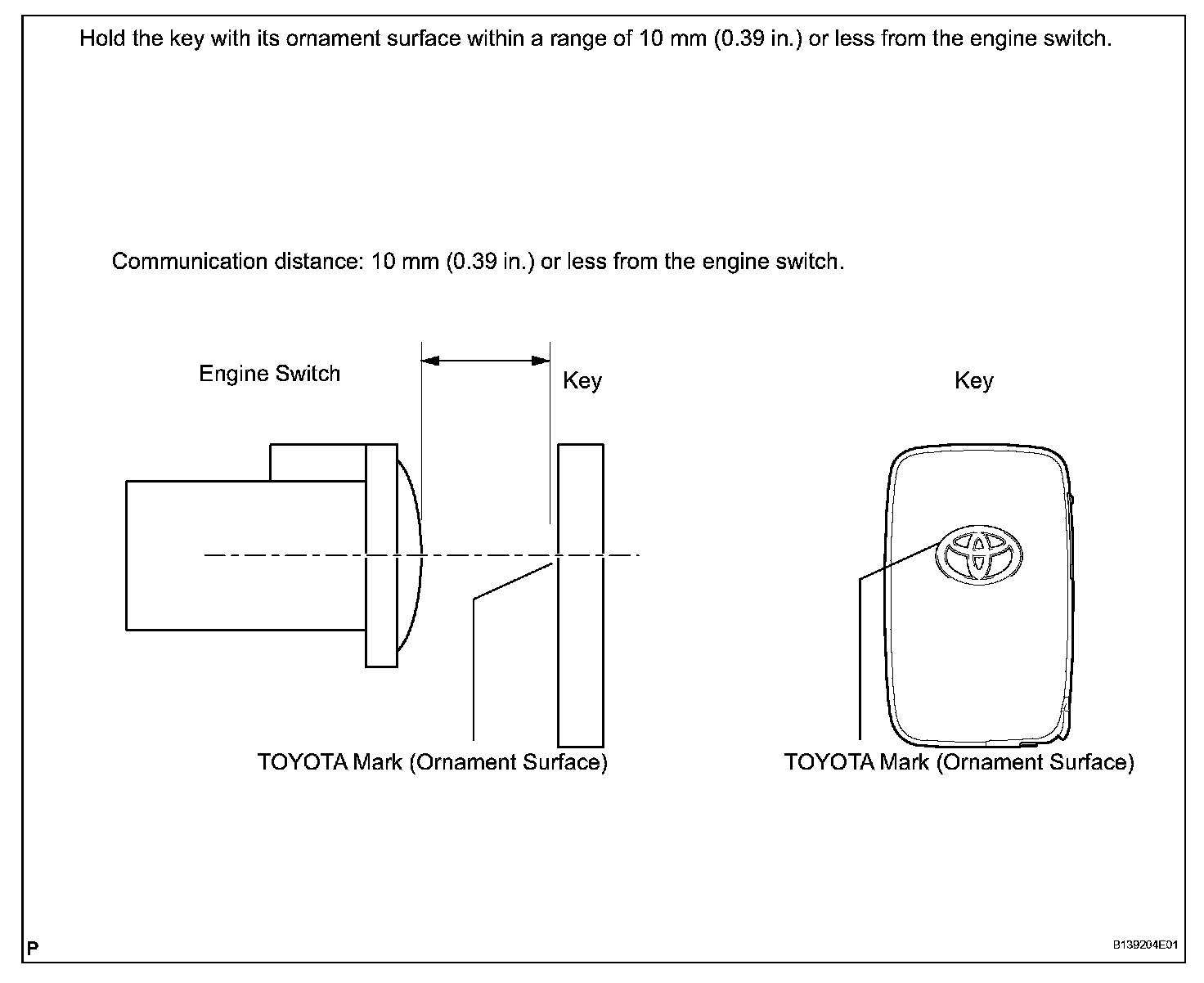 a. PROCEDURE "1" The vehicle with the smart access system with push-button start system does not have a key slot. Therefore, hold the key close to the engine switch to register the key, as shown in the illustration.